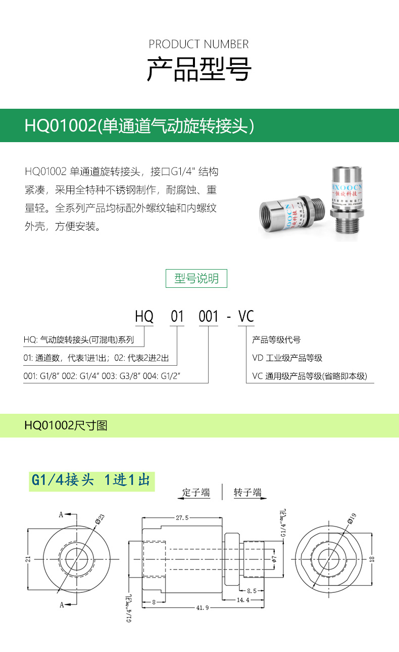 HQ系列單通道氣動(dòng)旋轉(zhuǎn)接頭(純氣動(dòng))選型表 | |||