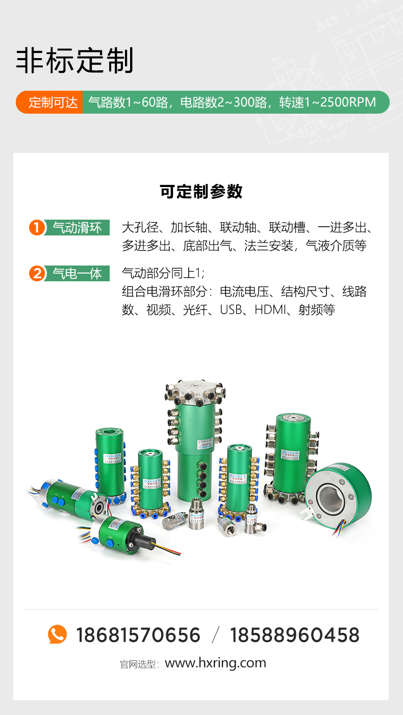 可根據(jù)要求定制氣滑環(huán)和氣電滑環(huán)接口尺寸和氣管。